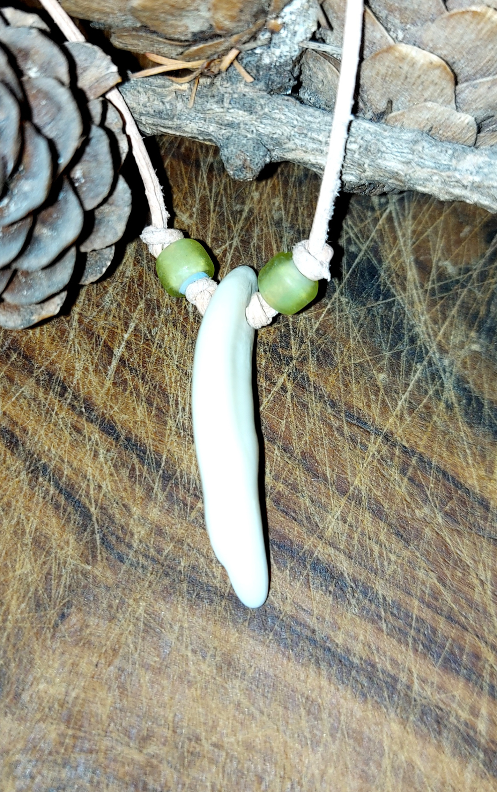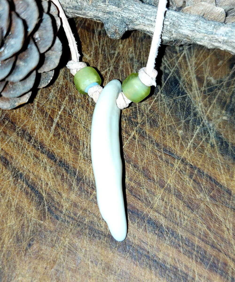 Coyotezahn ca. 3 cm lang mit hellgrünen Wickelglasperlen