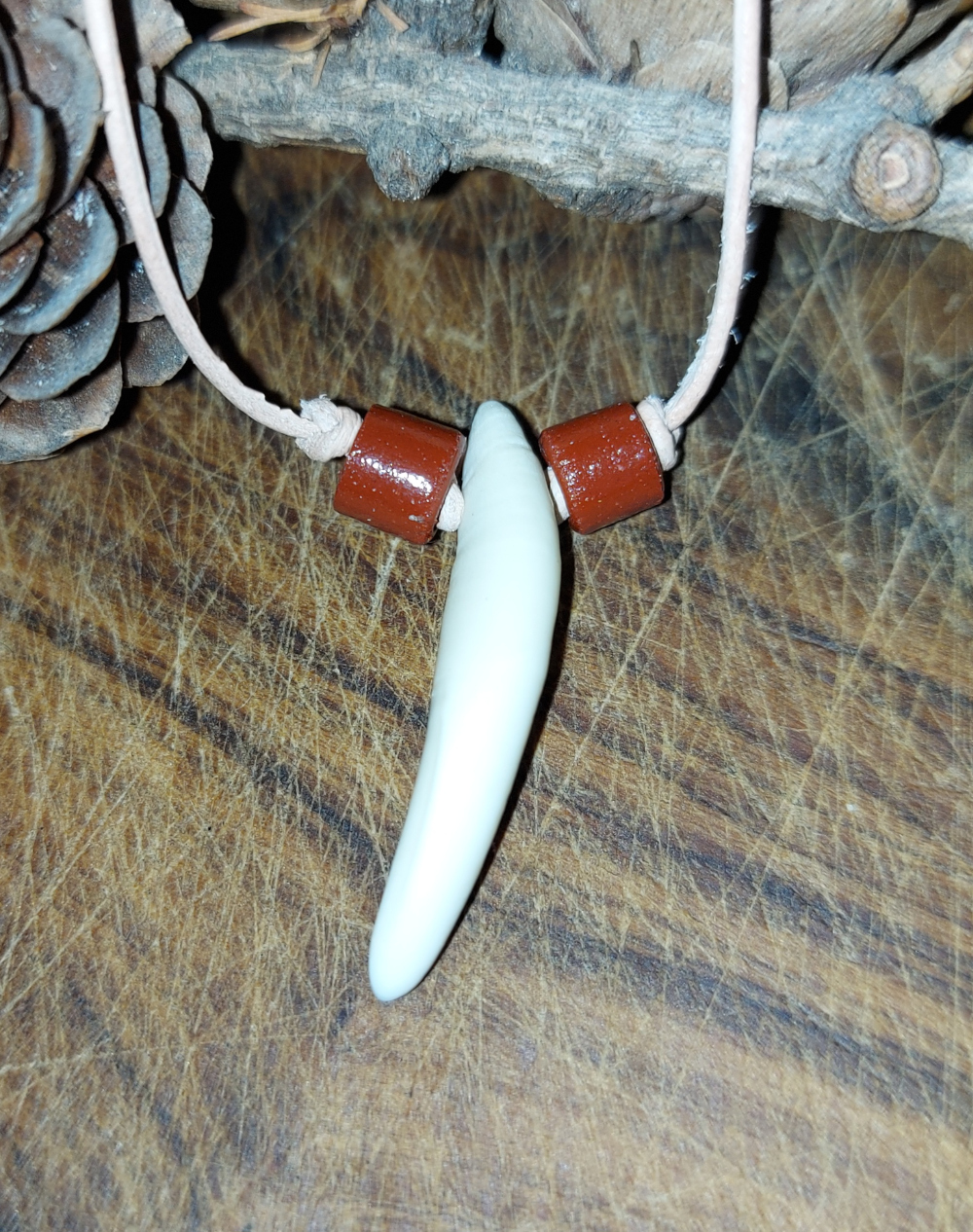 Coyotezahn ca. 3 cm lang mit roten Tonperlen